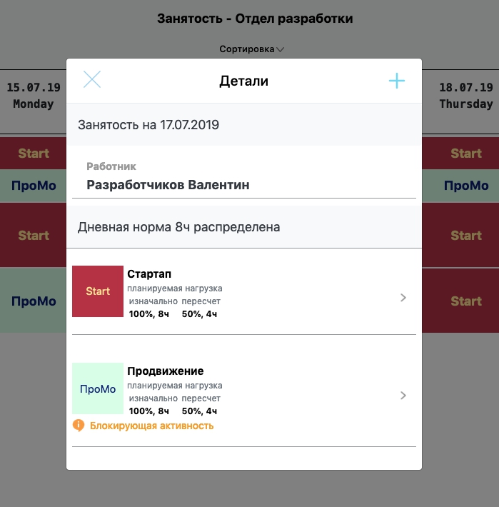 Как линейный руководитель, так и сотрудники его отдела могут открыть "Занятость" и там увидят полную картину