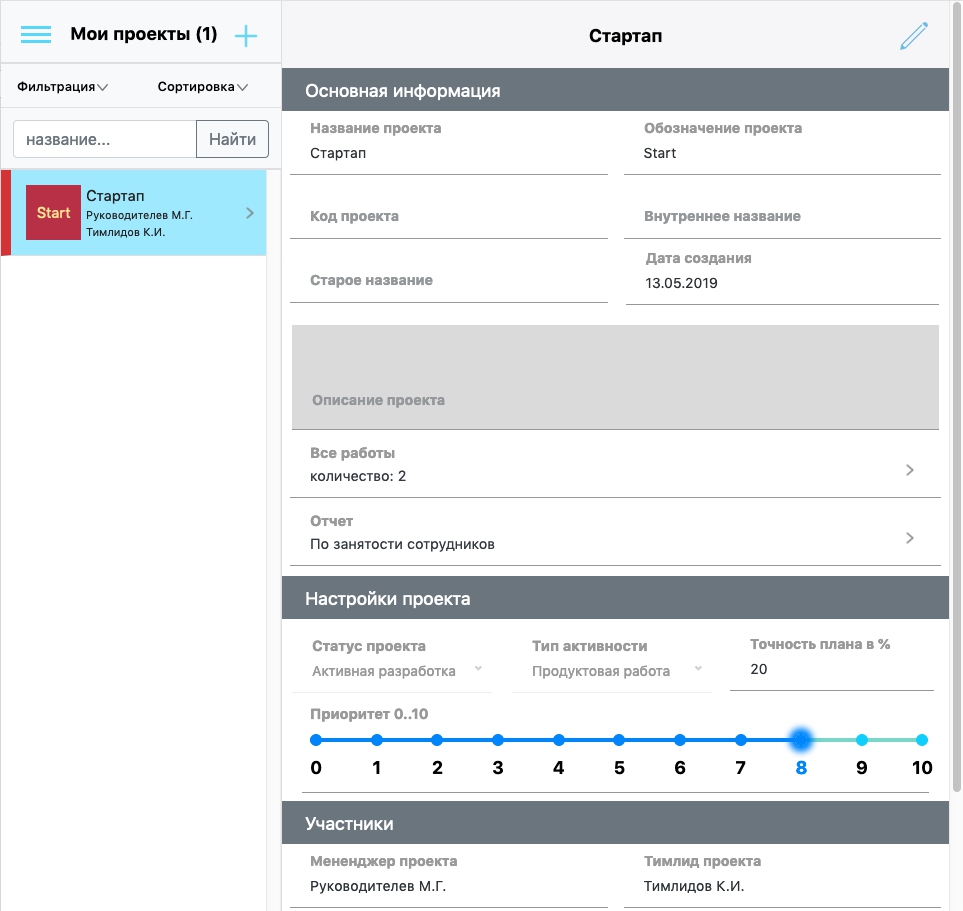 Еще важнейшим показателем проекта является приоритет, который выставляет "Директор" или "Главный HR".