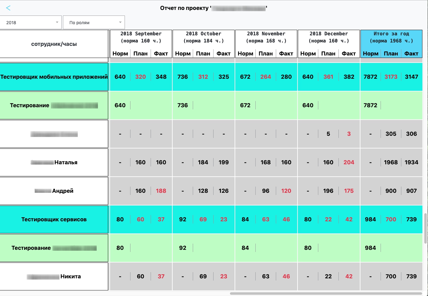 Для формирования отчета можно выбирать годовой период и группировку, если она требуется: по отделам или по ролям.